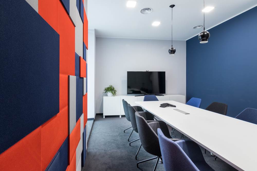 The designers had no easy task. The first important element they focused on was functional rooms. Based on a long list of interactions between employees we provided, teams had to design areas that will meet any of the daily tasks. Certainly, that’s why they created a “core” with telephone boxes and rooms for special tasks in the middle of the office space. One of the most interesting zones is the project area – Univers. It’s a room with open space, where desks heights are adjustable. The plan was to make a dynamic, standing area, where employees can meet quickly to discuss projects. Moreover, conference rooms and phone booths were additionally soundproofed by 3D wall panels.