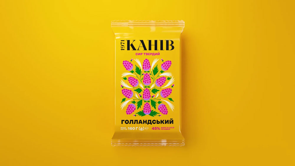 The result is a packaging concept that feels both traditional and modern, deeply connected to Ukrainian culture while being highly relevant in today’s market. The bright colors, hand-drawn elements, and storytelling approach make Kaniv 1971 cheese more than just a household staple—it becomes a symbol of cultural pride and ecological awareness.