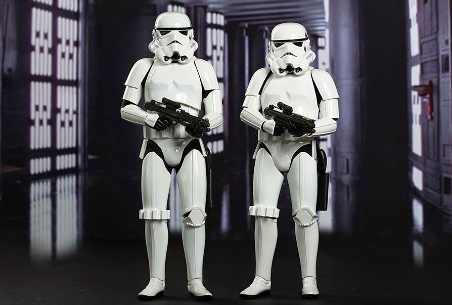 What about the stormtroopers? Visual identification seems to have won here over any sensible tactical or functional elements, which, branding tactics wise, is not really the best strategy. It probably started with the script of the 1st Star Wars movie, stating they are supposed to wear fascist white uniforms. But outside parades, white in the military usually makes sense in winter, and when the stormtroopers are deployed into battle on Hoth (just a lot of snow), it makes sense. It does not, however, make sense anywhere else… unless you want your soldiers to be visible. So, the explanation here is that the Galactic Empire does not care at all about the functionality of the uniform, as well as everyone knows they are coming, they represent the Galactic Empire, and they kick ass. On top of that, they just look cool, and then the designers came back to redesign them for episode 7 but they really didn’t change much.